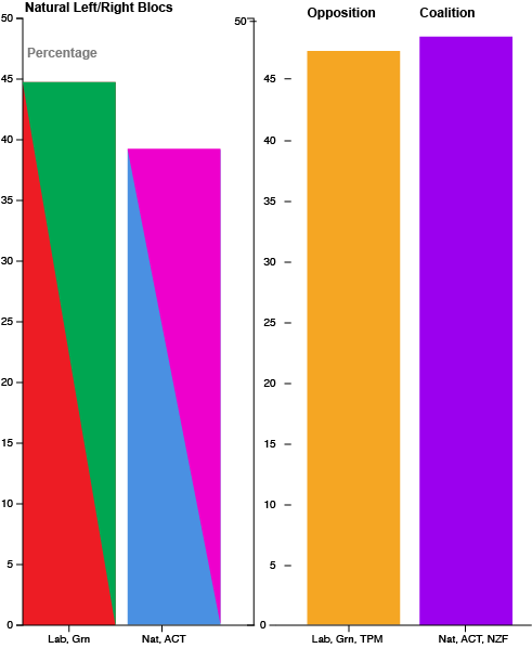 Chart 3: Natural voting blocs (left) v Opposition/Coalition including NZFirst  (right)